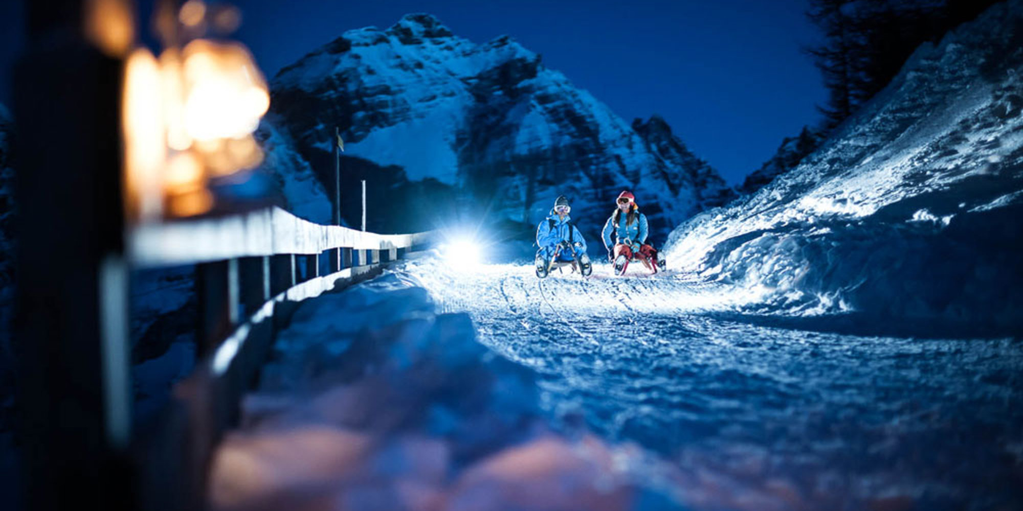 Verleihrodeln gibt es auf den Almen. Hüttengaudi und Rodelspass wie man es sich wünscht!